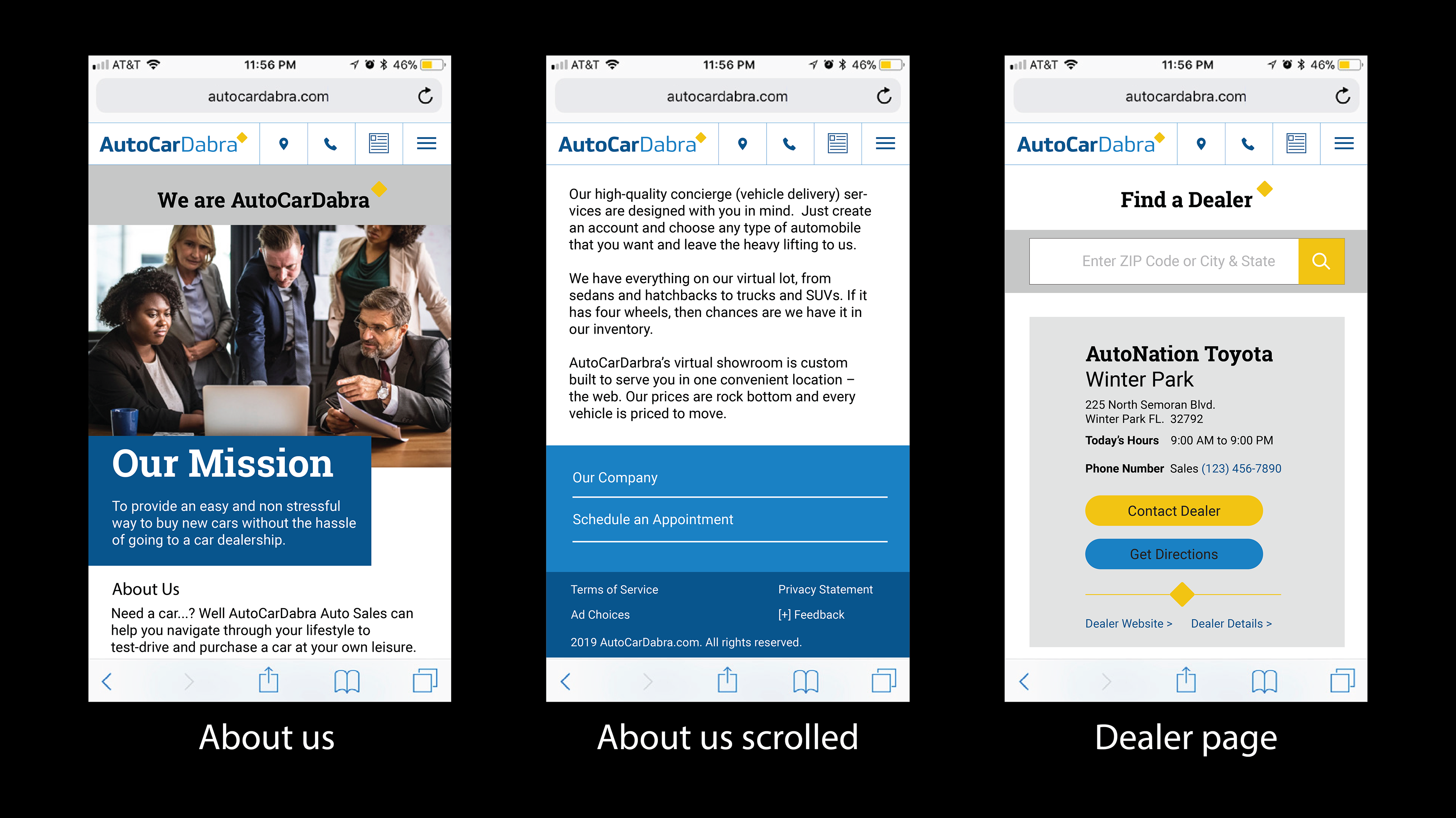 I was given an assignment to design website for a fictional used car site called AutoCarDabra. The logo and name were given to me and I set out to create a visually appealing mobile site.